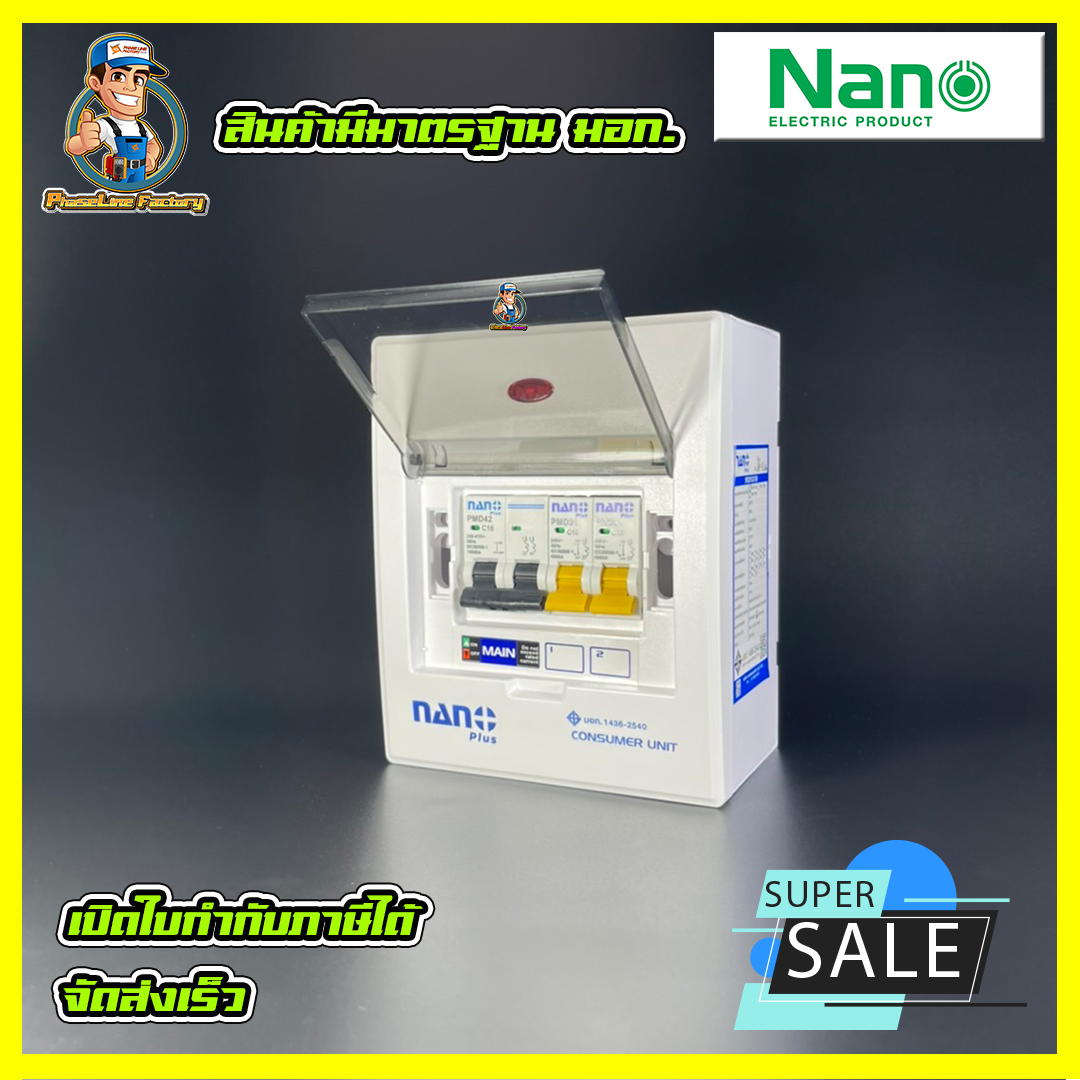 ตู้คอนซูมเมอร์ NANO Plus 2 ช่อง เมน MCB/RCBO 16/32/50/63A มีให้เลือกทั้งเมนธรรมดา และ เมนกันดูด เมน 16 A ประกอบด้วยลูกย่อย 2 ลูกคือ 10A=1 และ 10=1 1. ตู้คอนซูมเมอร์ยูนิต นาโนพลัส รุ่น 2-4 ช่อง (ราคารวมเมน + 2 ลูกย่อย)+เเผ่นปิด แบบเกาะราง DIN ใช้สำหรับติดตั้งรวมอุปกรณ์ป้องกันไฟฟ้าระบบต่างๆ เช่น เซอร์กิตเบรกเกอร์ (MCBs), อุปกรณ์ป้องกันกระแสไฟฟ้ารั่ว (RCCBs, RCBOs) และอุปกรณ์เสริมอื่นๆ 2. มีไฟ LED แสดงสถานะการใช้งาน และยังมีพลาสติกใสรอบ เทอร์มินอล เพื่อป้องกันการสัมผัสของผู้ใช้งาน 3. ทำจากวัสดุคุณภาพสูง มีความแข็งแรงทนทาน ไม่เป็นสนิม และไม่ลามไฟ 4. ทำให้การติดตั้งอุปกรณ์ป้องกันไฟฟ้าระบบต่างๆ มีความสวยงามเรียบร้อย 5. หน้ากากผลิตจากพลาสติกโพลีคาร์บอเนต (PC) 6. ฝาบนผลิตจากพลาสติก ABS 7. ตัวกล่องผลิตจากเหล็กหนา และ พ่นสีกันฉนวน ซึ่งผ่านการทดสอบค่าฉนวนทุกครั้งในไลน์ผลิต เลขที่ใบอนุญาต/ใบรับรองมาตรฐาน 1. ISO 9001 : 2015 2. ISO 14001 : 2015 3. มอก. 1436-2540